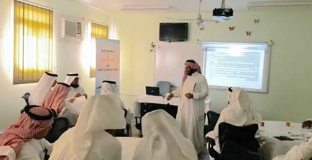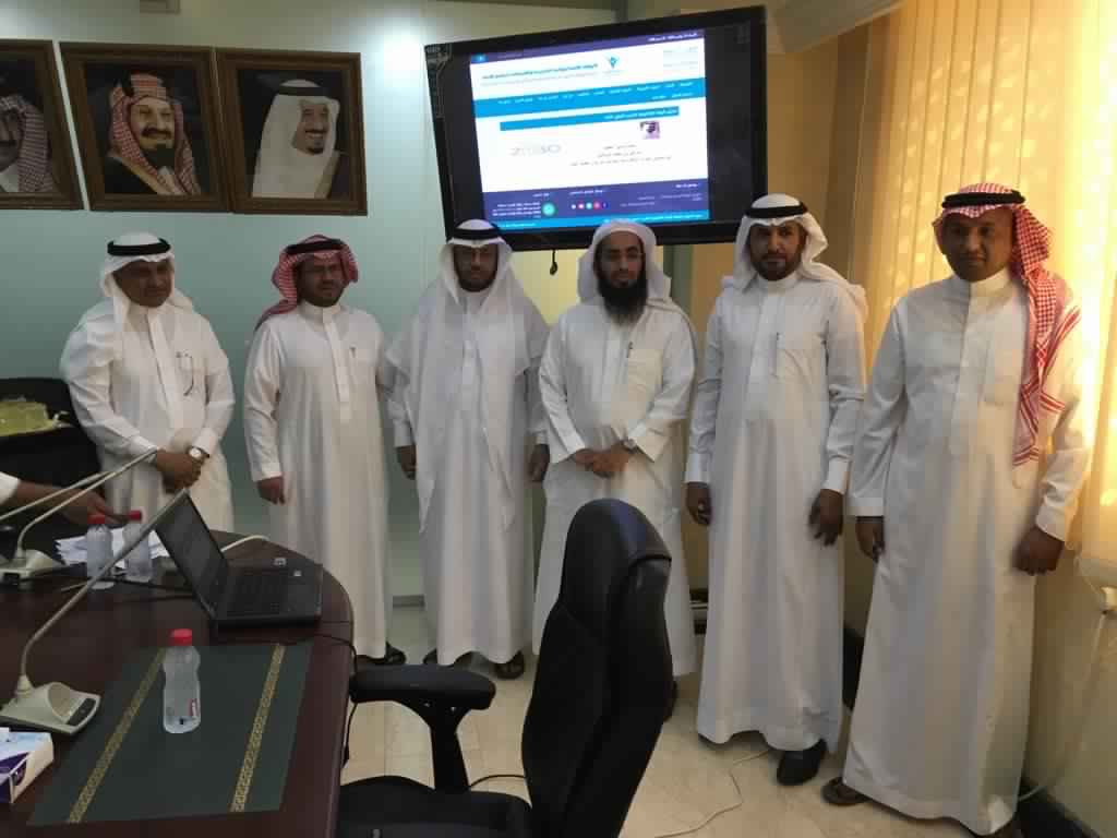 سعادة مدير التعليم أ.مرعي بن محمد البركاتي وسعادة المساعد للشؤون التعليمية د.زكي بن رزيق الحازمي في تدشين البوابة الإلكترونية للتدريب التربوي بتعل...